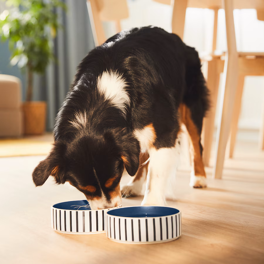 UTSÅDD อุทซดด์ ชามอาหารสัตว์เลี้ยง ลายทาง น้ำเงินดำ/น้ำเงินเข้ม 15 ซม.